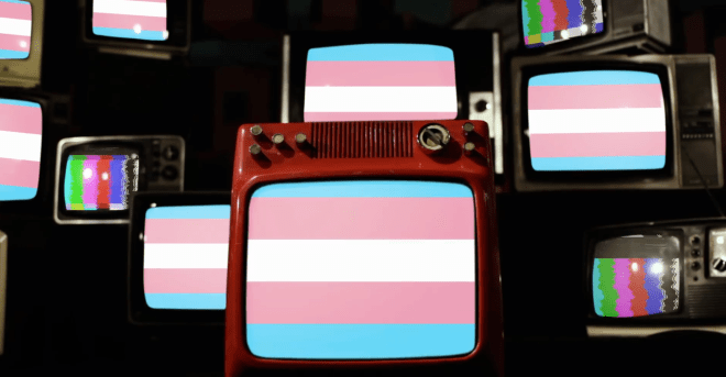 Upbeat music plays throughout the video. Frame 1: many small TVs start displaying the Trans flag one by one. Frame 2: Trans Fest Stockholm logo appears. Frame 3: says “Stockholm, November 20-21”. Frame 4: a video clip of the Stockholm skyline and water. Frame 5: says “Online and Live”. Frame 6: says “An event by and for the Trans Community”. Frame 7: displays the address of the venue “Höjden House, Östbergatorget 21, 12573 Älvsjö”. Frame 8: shows a large Trans flag in motion. Frame 9: says “Thanks to our supporters: ABF Stockholm”. Frame 10: says “See you soon! November 20-21, 2021” and displays the Trans Fest Stockholm logo and our homepage (transfeststockholm.org). Frame 11: says “Follow us on social media: Instagram & Facebook: @transfeststockholm“. Frame 12: says “Produced by Samantha Jane Smith. All video and music licensed by Envato Elements. Video editing software WeVideo”