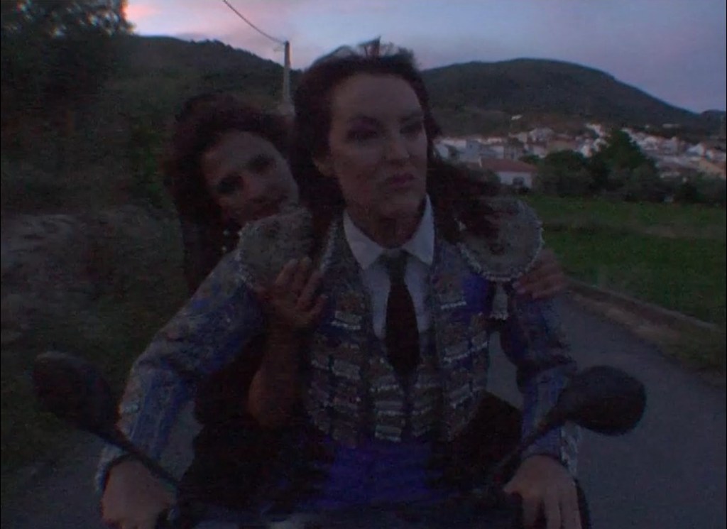 Martirio, the mourner, falls in love with Sagrario, the bullfighter, when she watches her bullfighting the only bull in her small town. To get closer to his beloved, he will burn this bull alive so that the two of them coincide at the animal’s funeral. There they will meet and begin an intense relationship, where at night they will search for the bull’s killer throughout the region. Finally, it will be Martirio who will offer to play the role of the bull on the motorcycle.